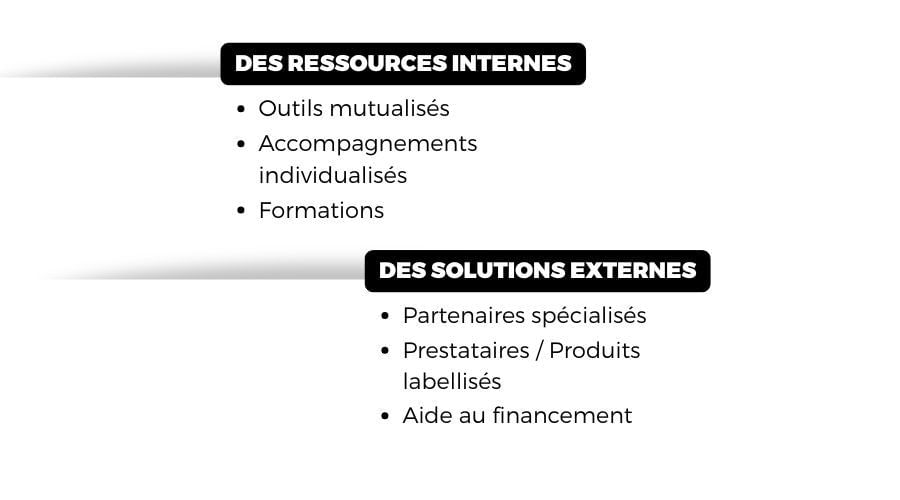 La Coopérative a pour mission de développer des ressources en interne ou de proposer des partenaires de confiance à ses hôteliers. Un ensemble de solution qui leur permettra d'aborder les grands enjeux de Développement Durable du secteur.