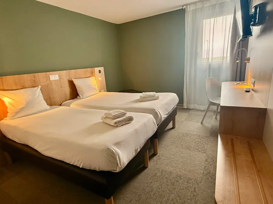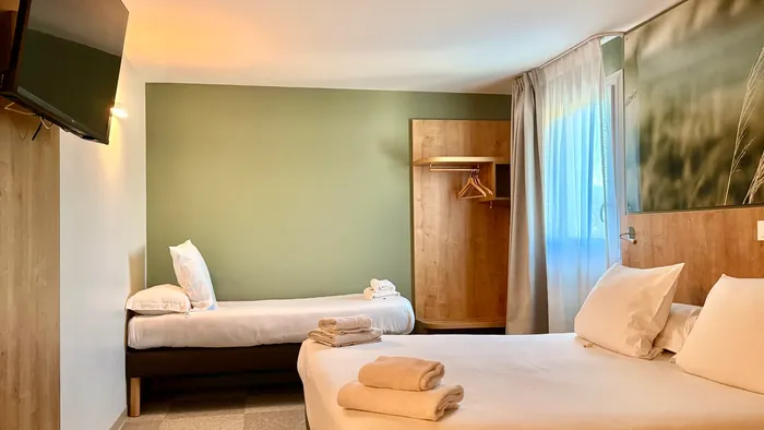 The 78 rooms at The Originals City, Hôtel Le Pavillon, Béziers Est in Villeneuve-lès-Béziers are functional, air-conditioned, and designed to ensure a restful night’s sleep. They can accommodate between two and three guests, with some rooms adapted for guests with reduced mobility. Families can also request connecting rooms.