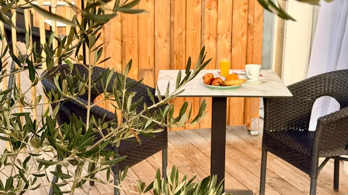 Our superior rooms open onto a wooded terrace, offering a peaceful space where you can work or simply relax.