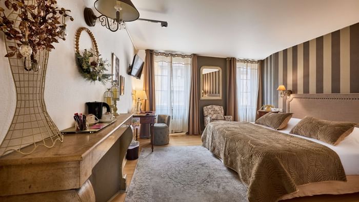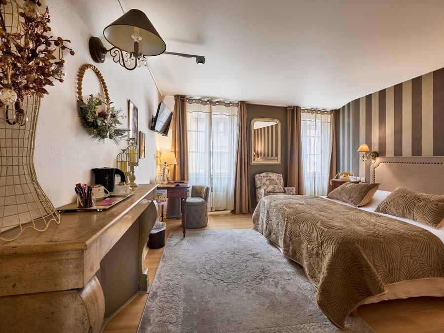 With modern comforts and period charm, the 47 rooms at The Originals Boutique Hôtel La Balance offer a cosy nest for peaceful nights. Recently renovated, they’re perfect for singles, couples and families alike. History enthusiasts may opt to sleep in the room dedicated to Marshal de Lattre de Tassigny (with his own furniture), the Tchaïkovski room or those paying tribute to the Dukes of Wurttemberg and the Peugeot family – a nod to local history.