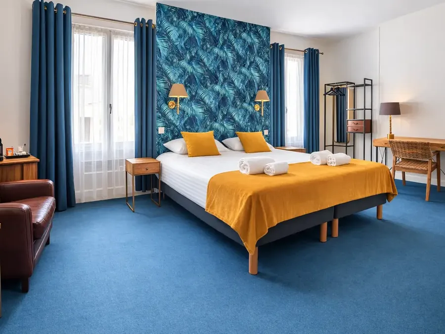The 18 rooms in this charming hotel feature custom-decorated rooms in a variety of styles that offer elegance, simplicity, and refinement. Take in the stunning views of the Indre River or the city and its bell tower from your window. The rooms are equipped with high-quality linens so you can get a great night's sleep as well as a desk, bathroom with a shower or bathtub, flat-screen television,hair-dryer, and unlimited Wi-Fi.