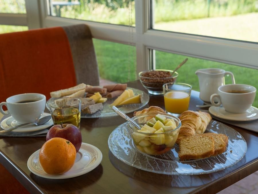 After a restful night, enjoy a complete buffet breakfast in the bright breakfast room overlooking the garden. Different packages are available combining breakfast or other meals, as well as special half-board options for business travellers.