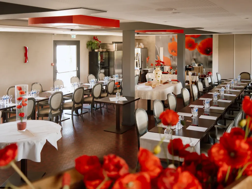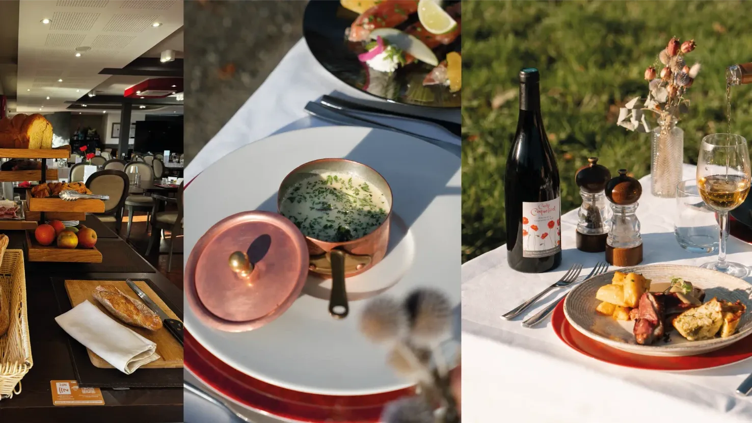Le dîner est servi du lundi au jeudi ainsi que le samedi, de 19h30 à 20h30, et le dimanche uniquement le midi. Le restaurant est fermé le vendredi soir (jusqu’à mi-avril, sauf exceptions) et reste accessible aux personnes à mobilité réduite. Pour bien commencer la journée, un petit-déjeuner buffet gourmand est proposé en salle en semaine de 7h00 à 9h30, et le week-end ainsi que le lundi de 8h00 à 9h30.