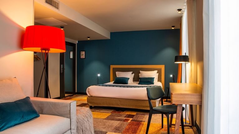 Qu'elles soient classiques, supérieures, familiales ou adaptées, les 28 chambres et suites de The Originals Boutique, Hôtel des Sources, Nevers Nord répondent à la règle des 3C +1D : charme, calme, confort, design. Des sols graphiques, des lignes pures, des couleurs explorant la palette des curry, bleu canard, gris anthracite. Les chambres de cet élégant hôtel de la Nièvre sont toutes spacieuses, parfaitement équipées, climatisées et non-fumeur.
