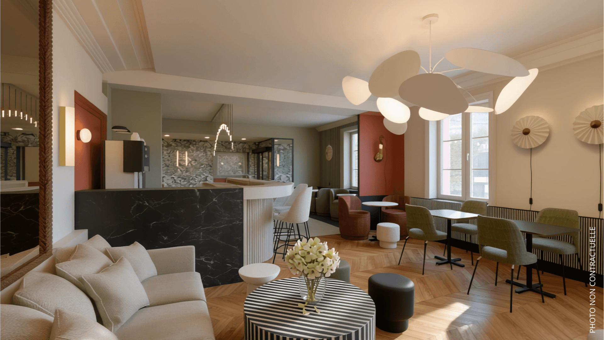 The Originals Relais, Hôtel 2M n’est pas un hôtel comme les autres. Patrimoine, confort et convivialité se côtoient ici en toute harmonie. « Derrière chaque sourire, chaque détail, il y a une attention, un acteur local et une histoire », dévoile Julien, directeur adjoint associé de l’établissement. L’histoire de Caroline et Hervé, qui après 20 ans dans l’industrie graphique rêvaient d’une reconversion, mais aussi celle de Justine et Julien - sommelière et restaurateur de profession – qui n’ont pas résisté à un retour aux sources dans leur Loire natale. « Je n’imaginais pas enfant que cette grande bâtisse historique de Saint-Just-Saint-Rambert deviendrait un jour notre hôtel », s’émerveille encore Justine. Deux ans de travaux auront été nécessaires pour que l’ancienne maison des Mellet-Mandard (riche famille de négociants locaux au XIXe s.) – transformée en hospices durant plus de 100 ans – connaisse une nouvelle vie. Désormais la maison des 2M, abrite 24 chambres au charme authentique et reposant, un bar et une salle de séminaire où les 4 fantastiques néo-hôteliers ont hâte de vous accueillir.