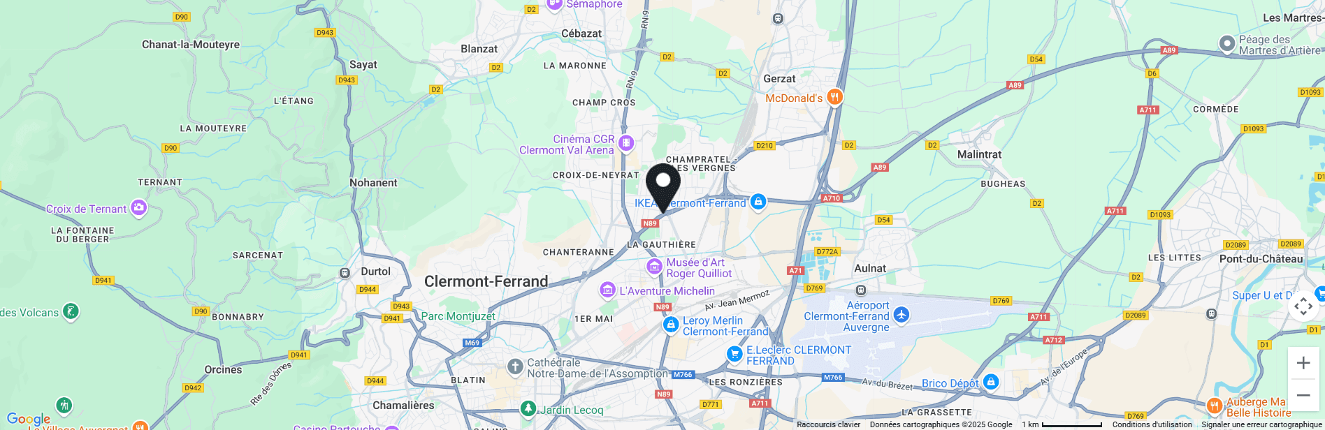 6 minutes en voiture de la gare SNCF de Clermont‑Ferrand