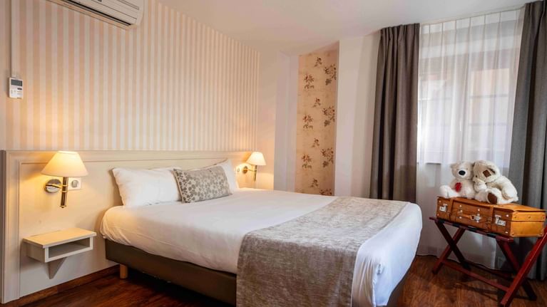 La belle façade décorée de The Originals Boutique, Hôtel de la Ferme du Pape abrite 53 chambres spacieuses et confortables. Le thème de prédilection : l’Alsace, bien sûr ! Bois omniprésent, imprimés rouge et blanc, cœurs (symbole de bonheur dans la tradition alsacienne)… Tout est ici pensé pour vous offrir d’agréables nuits, dans un cadre authentique, douillet et au calme en duo comme en famille.