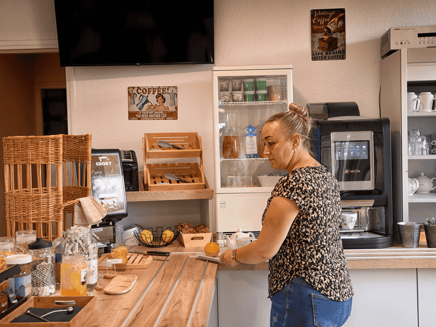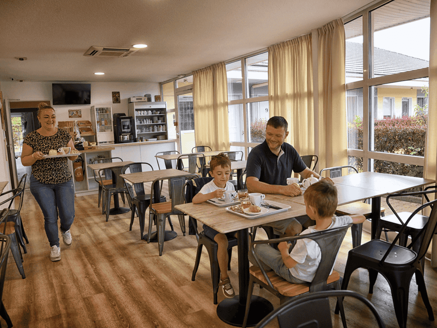 Pouvant accueillir une trentaine de personnes, le restaurant de l’hôtel propose une cuisine traditionnelle, simple et locale. Ses spécialités ? En entrée, le pounti, « fait maison » précise Laurent. Et en plat : l’incontournable saucisse aligot ! Restaurant ouvert uniquement en semaine et le soir.