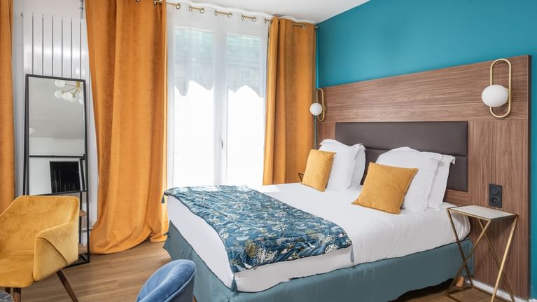 Les 26 chambres de The Originals Boutique, Hôtel Le Marignan vous offrent confort, charme et élégance. Entièrement rénovées, elles proposent une décoration résolument contemporaine portée par une palette de couleur aux tons chauds. Fonctionnelles, elles répondent à toutes les demandes : simple, double, triple, quadruple, suite familiale, PMR… Sans oublier, la petite attention en plus avec la présence d’un plateau de courtoisie.