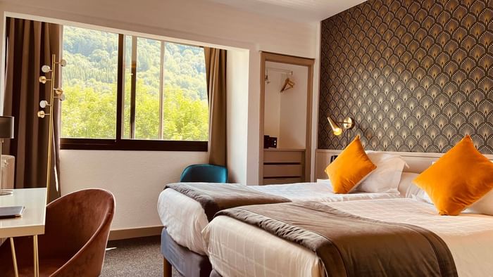 Esprit cosy chic ou design chaleureux d’un chalet contemporain, les 38 chambres de The Originals Boutique Hôtel Le Panorama vous offrent des prestations de qualité. Réparties en 5 catégories, elles donnent vue sur cour ou sur le Mont-Dore. Certaines bénéficient d’un agréable balcon. L’établissement propose aussi des chambres familiales (pour 4) ainsi qu’une suite luxe avec chambre, salon, dressing.