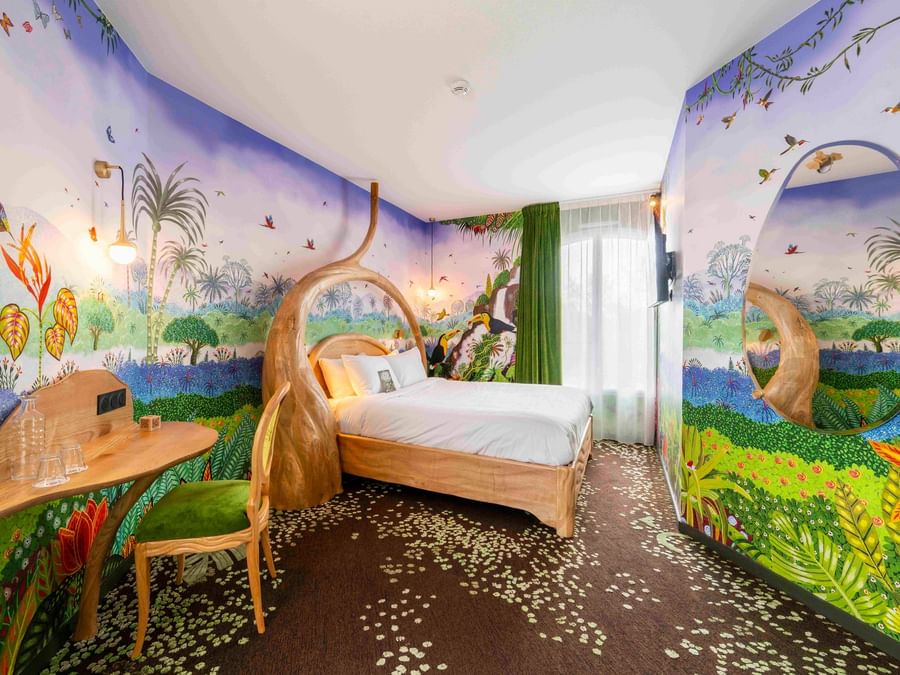 Réparties sur 2 étages, les chambres de The Originals Boutique, Rivella s’inspirent de la double culture de Clisson, proposant une ambiance entre vignobles et touche italienne. L’une des 63 chambres se distingue par sa décoration réalisée par l’artiste Alain Thomas, chef de file de la peinture naïve-primitive à l’imaginaire foisonnant et coloré ! Pouvant accueillir de 2 à 4 personnes, toutes les chambres sont spacieuses, confortables et climatisées. Deux d’entre elles sont dédiées à l’accueil des personnes à mobilité réduite.