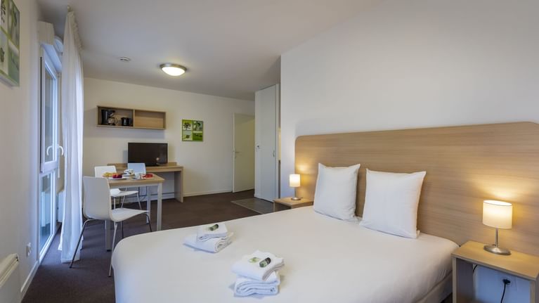 Si vous ne souhaitez pas préparer votre petit-déjeuner dans votre appartement, le KOSY Appart’hôtels Troyes – City & Park dispose d’un espace de restauration où est proposé un buffet « continental » : boissons chaudes et froides, viennoiseries, produits céréaliers et laitiers, etc. L’établissement ne possède pas de restaurant mais sa situation en centre-ville permet de trouver à proximité un large panel d’enseignes qui sauront répondre à toutes vos envies (restaurants comme commerce d’alimentation).