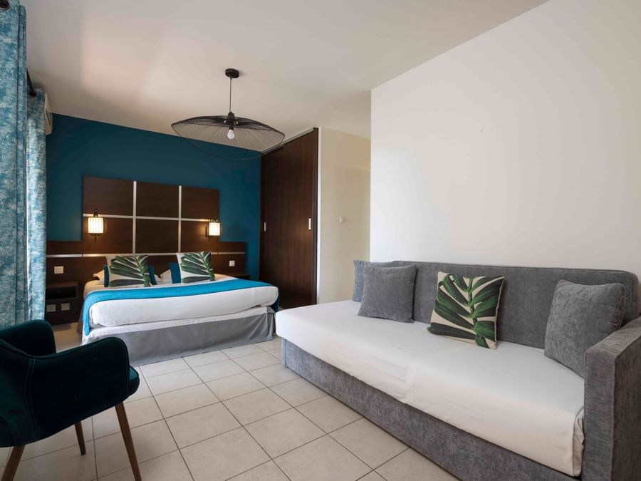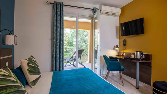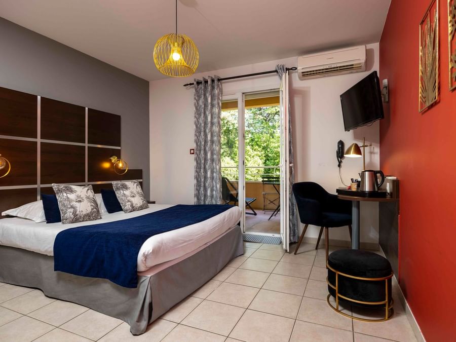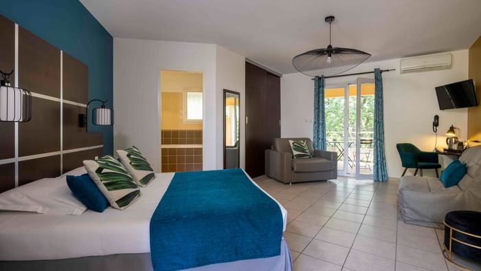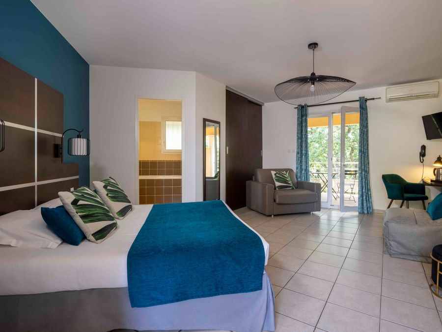 A l’image de l’hôtel, les 24 chambres doubles de ce 3 étoiles sont sobres et fonctionnelles. Pouvant accueillir jusqu’à 4 personnes, elles disposent toutes de la climatisation et d’une terrasse privative donnant sur le parc et les collines avoisinantes. Certaines sont également équipés d’un petit coin cuisine. Les familles et les personnes à mobilité réduite y seront bien installées.